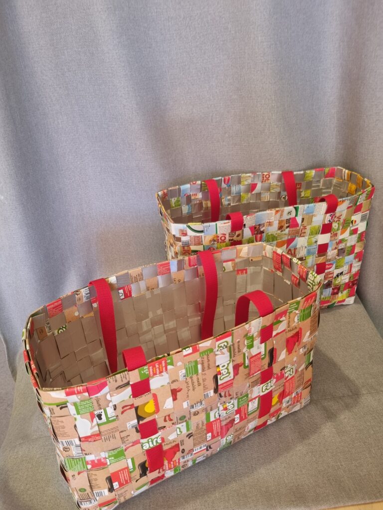 Aus alt mach neu! Wir schneiden Streifen aus Tetrapacks und weben daraus eine stabile Einkaufstasche.