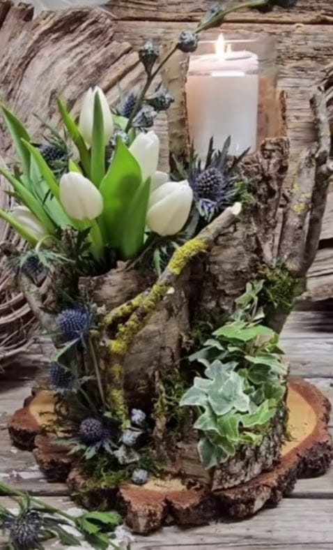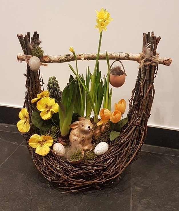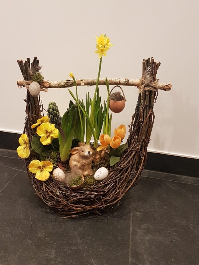 Wir arbeiten mit frischen Pflanzen und Blumen oder Trockenblumen. Mit beiden Materialien werden Jahreszeiten-angepasste Projekte umgesetzt. Die Teilnehmer befolgen den Anweisungen, ihnen wird aber viel Freiraum der eigenen Gestaltung gegeben, sodass jeder mit einem einzigartigen Gesteck, Kranz oder frühlingshafte Dekoration nach Hause geht.