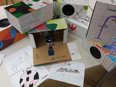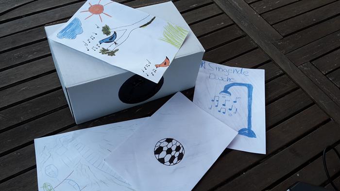 Die Musik-Stachel-Box ist ein kurioses Instrument von Klangkünstler Erwin Stache, welches ihr in der Klangwerkstatt bauen könnt. Es handelt sich um eine besondere Schachtel mit einem Lautsprecher, Drähten, Sensoren, Batterien und vielem mehr. Legst du nun spezielle Kärtchen auf die Box, so spielt sie auf einmal Töne, Geräusche oder Musik. Du schneidest, steckst und klebst dieses Instrument selbst zusammen, kannst es bemalen und schließlich mitnehmen, um deine Lieblingsmusik zu hören oder Freunde und Familie mit komischen Geräuschen zu überraschen.